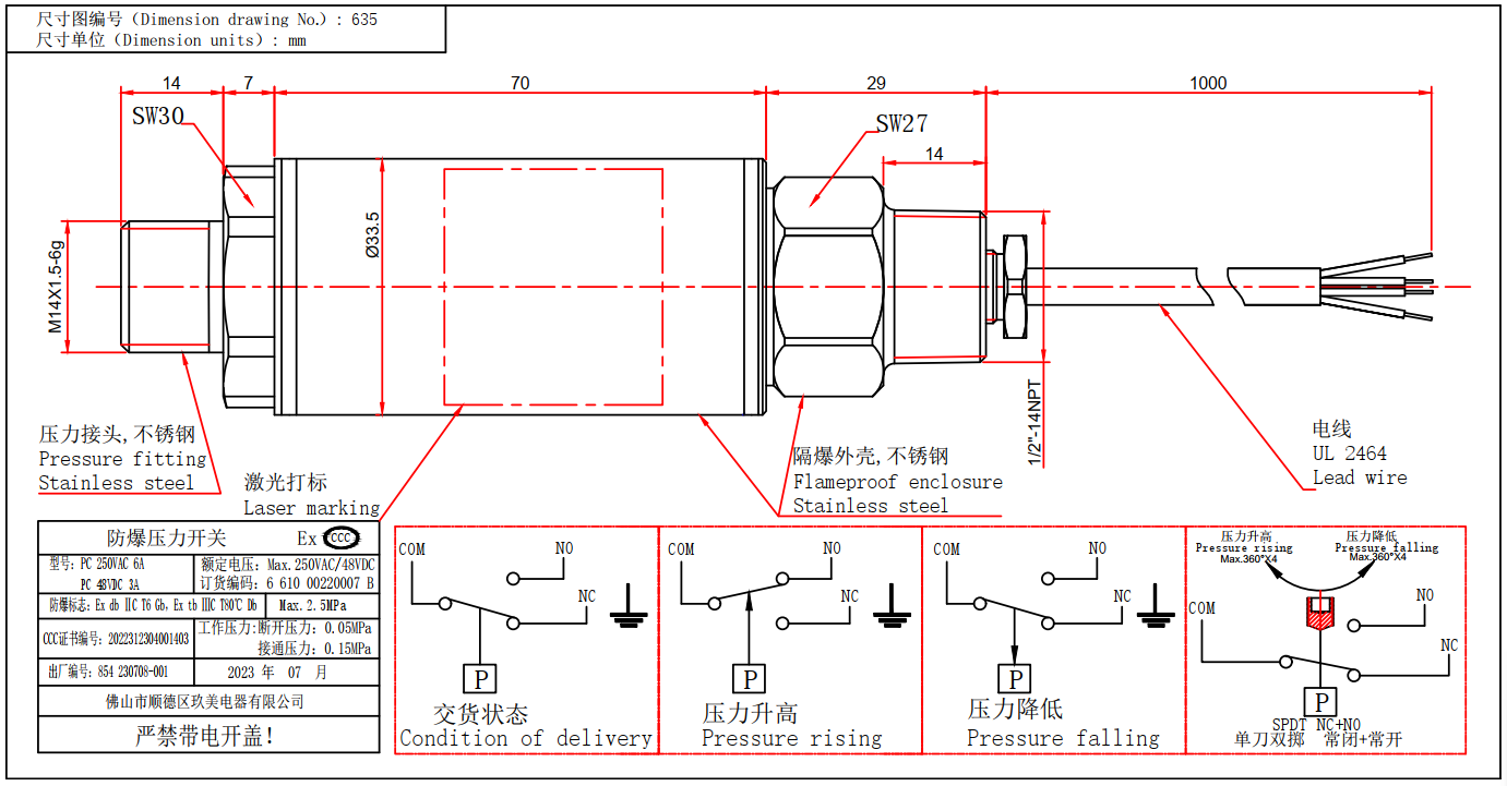 Explosion proof Mark: Ex db IIC T6 Gb,Ex tb IIIC T80℃ Db